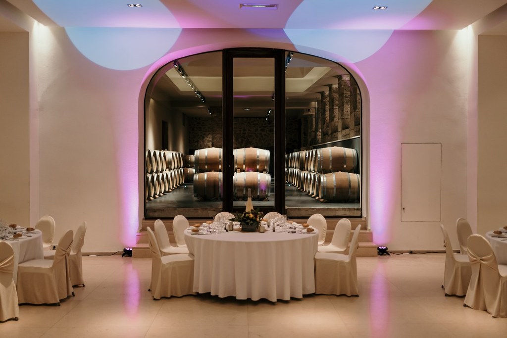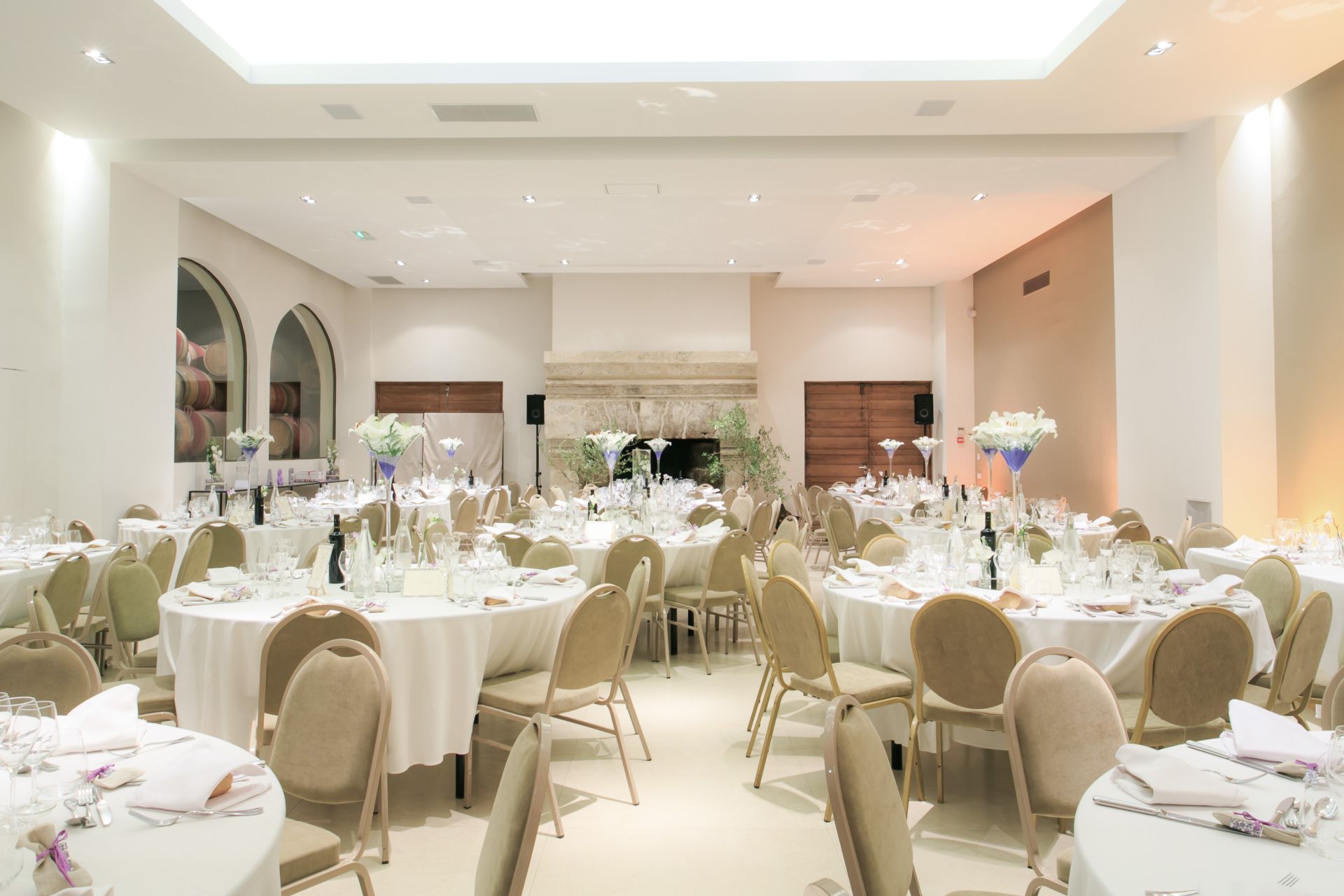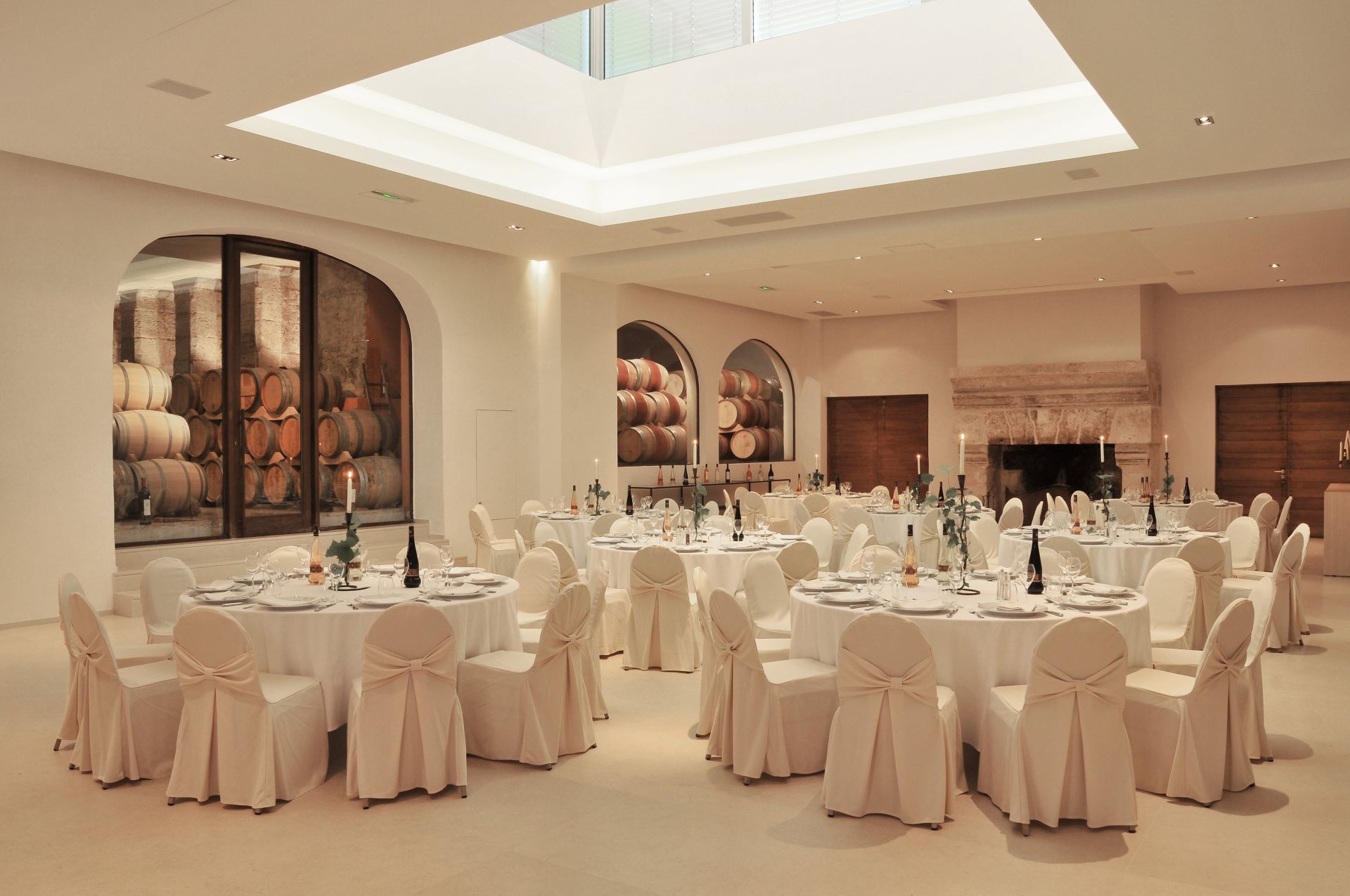The Barrels Room is the perfect setting to celebrate your wedding, offering a splendid view of the wine cellars. Its two monumental 16th-century fireplaces and glass ceiling create a warm yet contemporary atmosphere, enhanced by its impressive high ceilings.