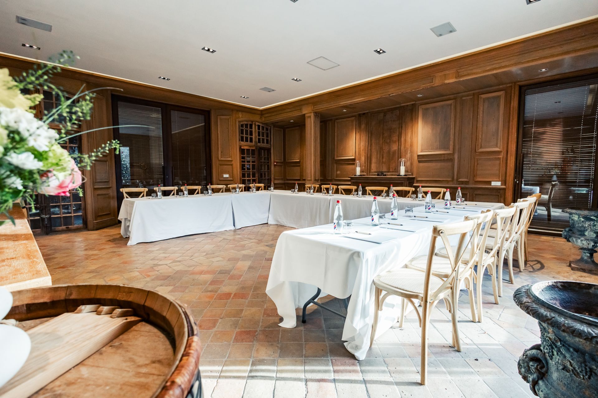 In the heart of the estate, discover this 64 m² room, an intimate and cozy space, ideal for organizing your seminars or professional events. Completely adorned with antique wood paneling, it offers an elegant and refined atmosphere, perfect for fostering concentration and communication.