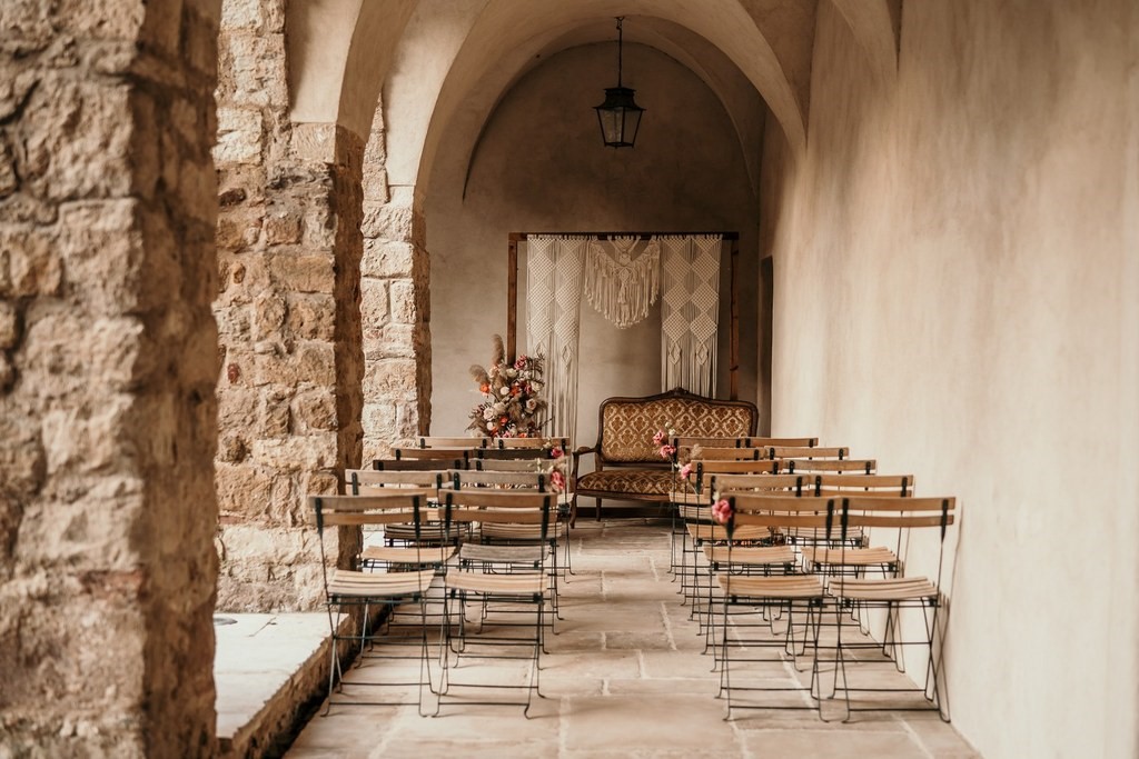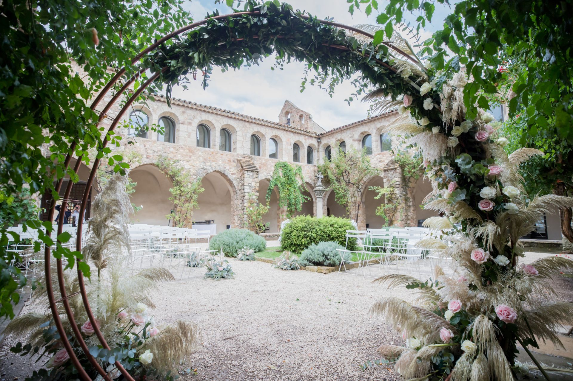 The 12th-century Cloister is a classified historical monument, an ideal place to celebrate the most precious moments of your life. Nestled in a setting rich in history and beauty, it offers an intimate, serene, and romantic atmosphere, perfect for hosting your reception. With its abundance of roses and centuries-old vines, it exudes serenity and deep romanticism.